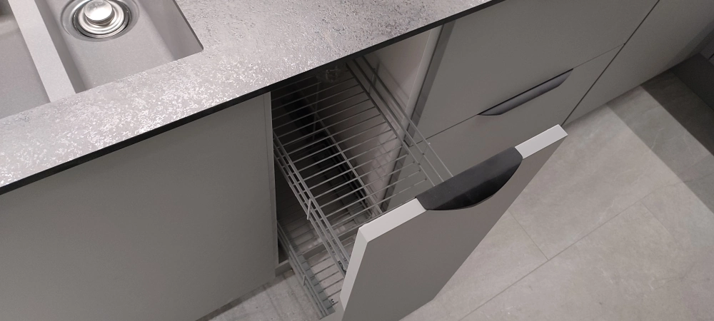 Systemy narożne i wysuwane półki – wykorzystują trudne zakamarki, do których w standardowych meblach dostęp jest ograniczony.