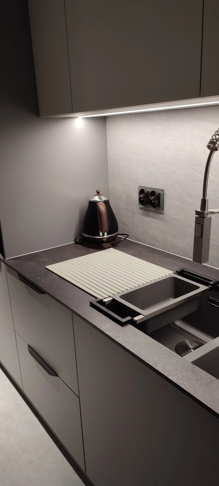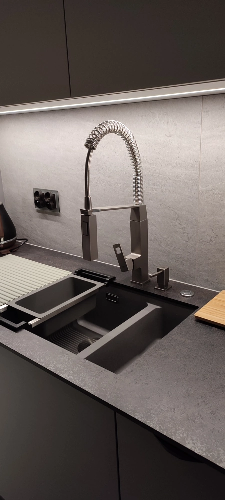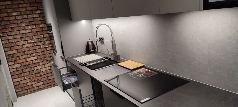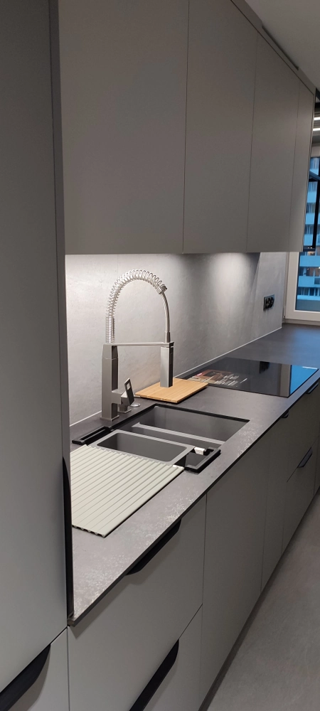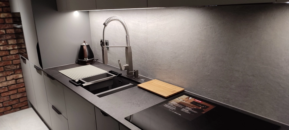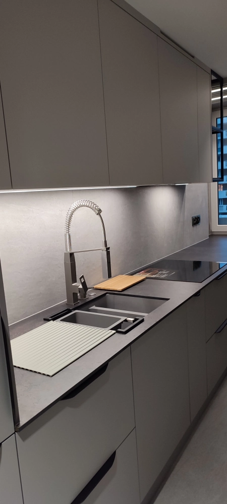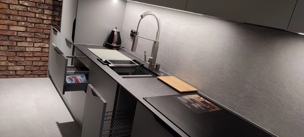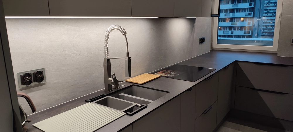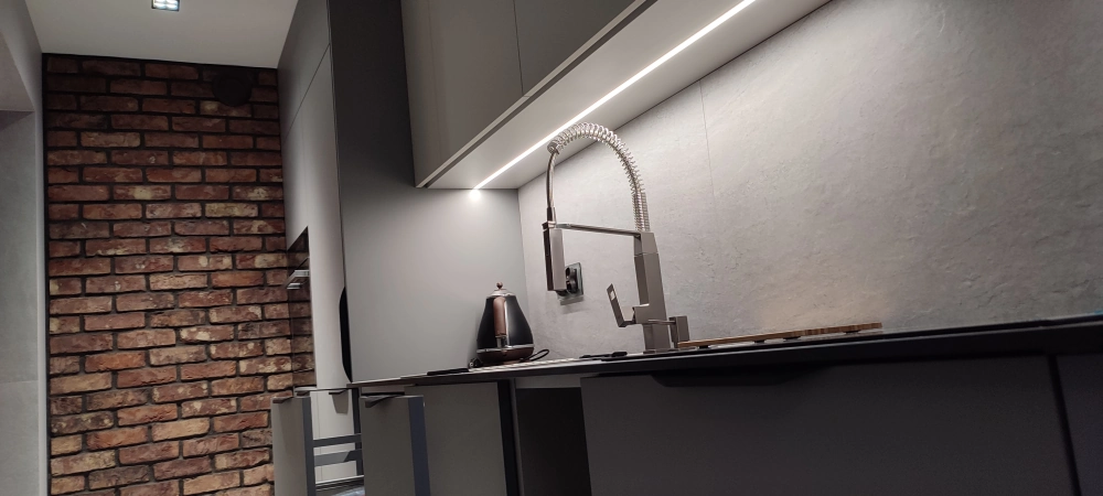 Oświetlenie LED – listwy podszafkowe i punktowe źródła światła poprawiają komfort pracy i wprowadzają przytulny klimat.